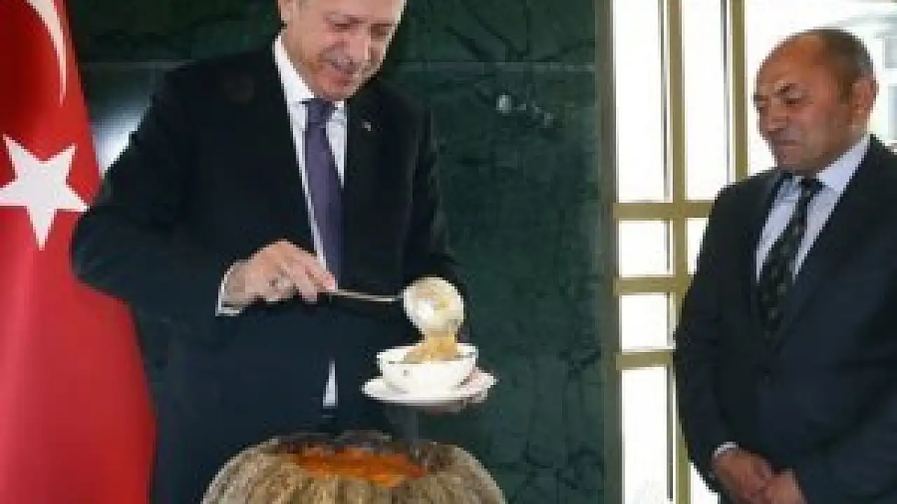 Cumhurbaşkanı Recep Tayyip Erdoğan, 13. Muhtarlar Buluşması dolayısıyla Cumhurbaşkanlığı Külliyesinde ağırladığı muhtarlara kendi elleriyle aşure ikram etti.