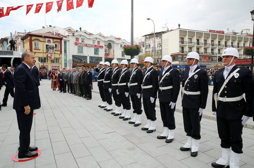 Polis tören mangası tarafından valilik girişinde karşılanan Cumhurbaşkanı Erdoğan'a, Vali Yakup Canbolat tarafından kentle ilgili brifing verildi.