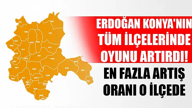 - Cumhurbaşkanı Erdoğan Konya'nın tüm ilçelerinde oyunu artırdı! En fazla artış oranı o ilçede