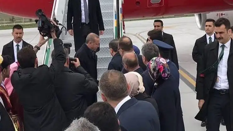 Uçak saat 12:30 sıralarında Konya Havalimanı'na indi. Cumhurbaşkanı Erdoğan'ı Eski Başbakan ve AK Parti Konya Milletvekili Ahmet Davutoğlu, AK Parti Genel Başkan Yardımcısı Ahmet Sorgun, Konya Valisi Yakup Canbolat, Büyükşehir Belediye Başkanı Tahir Akyürek, AK Parti Konya İl Başkanı Musa Arat ve milletvekilleri karşıladı.