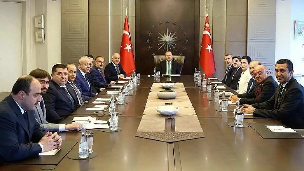 Cumhurbaşkanı Erdoğan, Kerem Kınık ile Kızılay'ın yönetim ve denetim kurulu üyelerini Tarabya'daki Huber Köşkü'nde kabul etti.