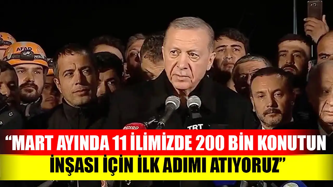 - Cumhurbaşkanı Erdoğan: Mart ayında 11 ilimizde 200 bin konutun inşası için ilk adımı atıyoruz