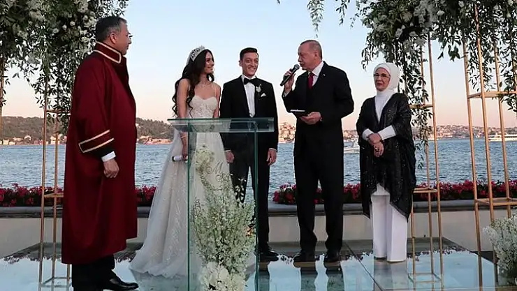 Türkiye Cumhurbaşkanı Recep Tayyip Erdoğan ve eşi Emine Erdoğan, Arsenal'in Türk asıllı Alman futbolcusu Mesut Özil ile Amine Gülşe çiftinin nikah şahidi oldu.