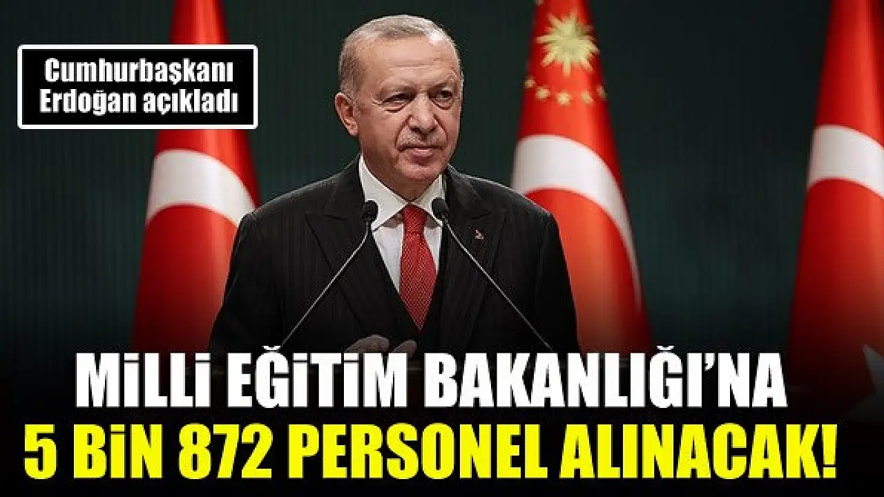 - Cumhurbaşkanı Erdoğan: Milli Eğitim Bakanlığı pansiyonlarına 5 bin 872 personel alınacak