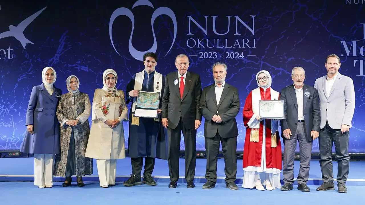 Aralarında Cumhurbaşkanı Erdoğan'ın torunu Ahmet Akif'in de bulunduğu öğrencilerin mezuniyetlerinde duygulu anlar da yaşandı. Törende konuşan Cumhurbaşkanı Erdoğan, bundan 10 sene önce millî ve manevi değerlerine bağlı iyi insan yetiştirmek gayesiyle kurulan NUN Okulları'nın da tıpkı çocuklar gibi günbegün büyümesine ve olgunlaşmasına yakından şahitlik ettiklerini söyledi.