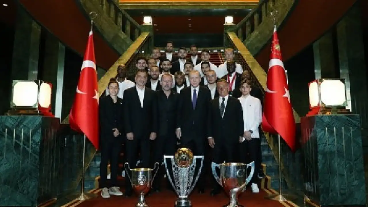 Cumhurbaşkanı Erdoğan, Süper Lig ve Ziraat Türkiye Kupası'nı müzesine götüren Beşiktaş'ı kabul etti.