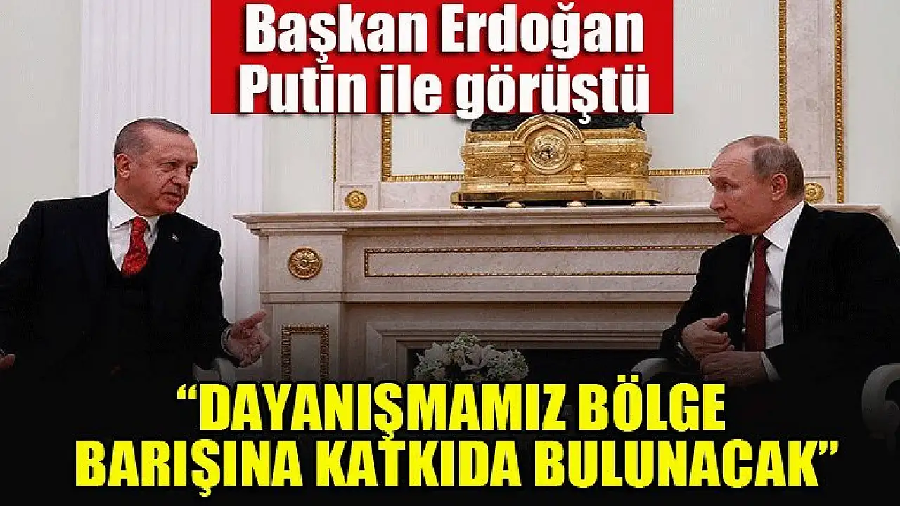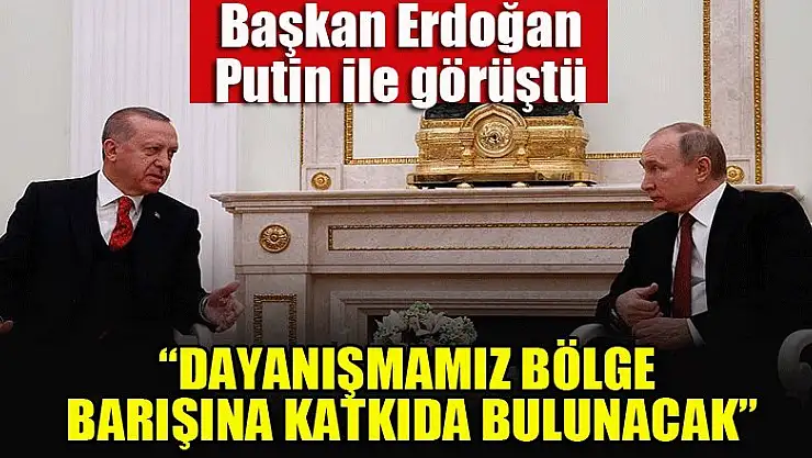 Cumhurbaşkanı Erdoğan'ın Rusya Devlet Başkanı Putin ile görüşmesi sona erdi. Erdoğan görüşme öncesi açıklamasında 'Dayanışmamız bölge barışına katkıda bulunacak. Ticari ilişkilerimizdeki gelişme sürekli artıyor' dedi.