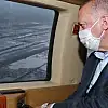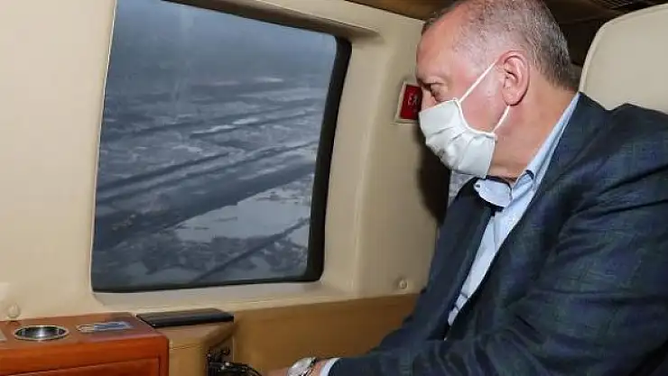 Erdoğan, sel bölgesinin ardından Pazar ilçesinde inşası süren Rize-Artvin Havalimanını havadan inceledi.