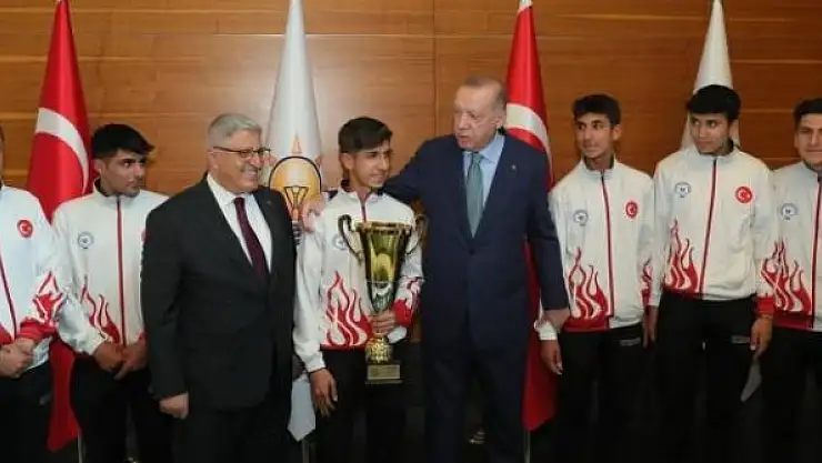 Cumhurbaşkanı Recep Tayyip Erdoğan, Slovakya'da düzenlenen Liselerarası Dünya Kros Şampiyonası'nda, takım olarak altın madalya kazanarak birinci olan Bitlisli sporcuları ağırladı.