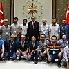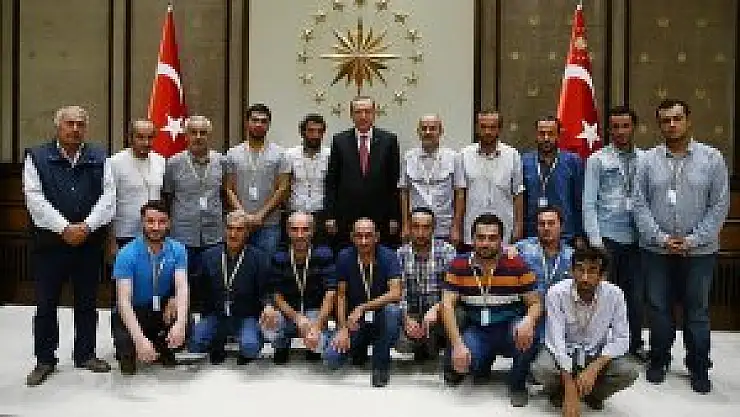 Cumhurbaşkanı Erdoğan, Irak'ta 28 gün alıkonulduktan sonra serbest bırakılan 16 Türk işçiyi Cumhurbaşkanlığı Külliyesi'nde kabul etti.