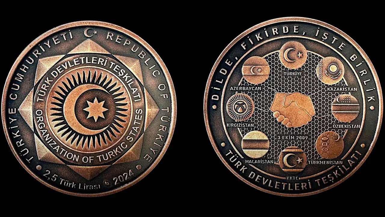 Hatıra paranın bir yüzünde ise Türk Devletleri Teşkilatı'nın bayrağı ve ismi ile kuruluş tarihi olan 3 Ekim 2009 ibaresi bulunuyor.