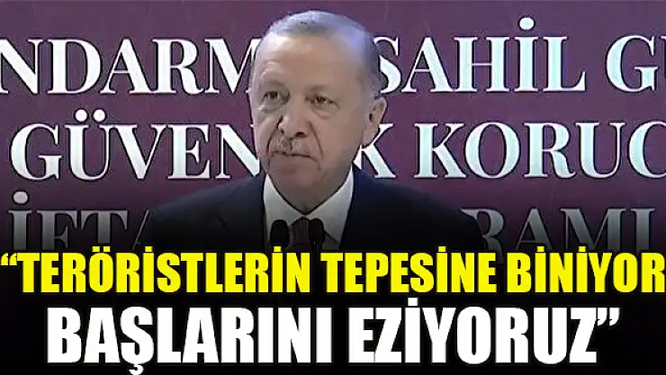 Baltalimanı Polisevi'nde, 'Polis, Jandarma ve Sahil Güvenlik Personeli ile İftar Programı'na katılan Cumhurbaşkanı Erdoğan, terörle mücadele vurgusu yaptı. Türkiye sınırları içerisinde terörü bitirme noktasına getirdiklerini ifade eden Erdoğan, 'Artık terör örgütlerinin saldırmasını beklemiyor, onları inlerinde vuruyoruz. Tepelerine biniyor, başlarını eziyoruz.' dedi.