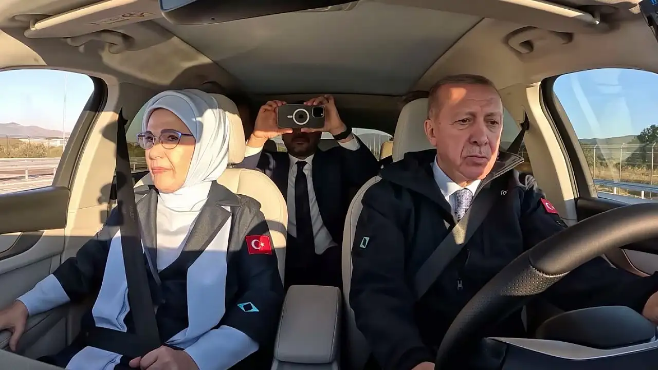 Cumhurbaşkanı Erdoğan 'Togg' kullandı, o iki şarkıya eşlik etti
