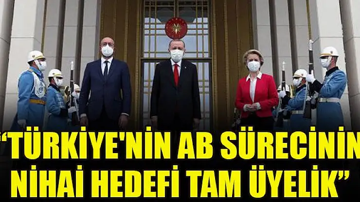 Cumhurbaşkanı Erdoğan, AB Konseyi Başkanı Michel ve Komisyonu Başkanı Leyen ile yaptığı görüşmede, Türkiye'nin nihai hedefinin AB'ye tam üyelik olduğunun altını çizdi.