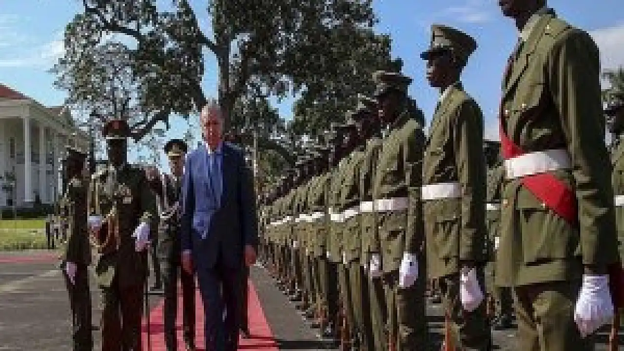 Cumhurbaşkanı Recep Tayyip Erdoğan, resmi bir ziyaret için geldiğiUganda'da, Cumhurbaşkanı Yoweri Museveni tarafından resmi törenle karşılandı.