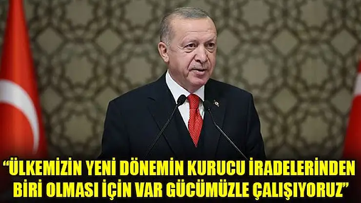 - Cumhurbaşkanı Erdoğan: Ülkemizin yeni dönemin kurucu iradelerinden biri olması için var gücümüzle çalışıyoruz