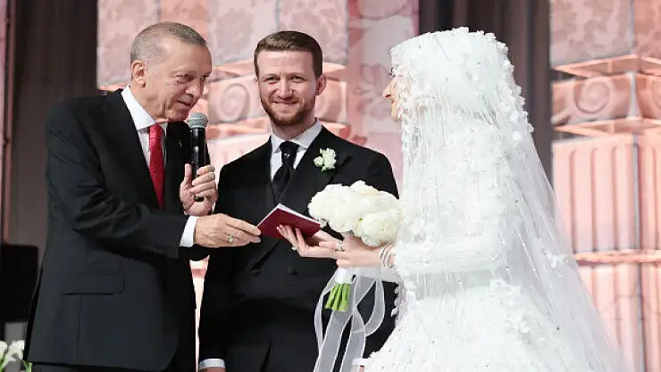 Cumhurbaşkanı Recep Tayyip Erdoğan, kardeşi Mustafa Erdoğan'ın oğlu Usame Erdoğan'ın nikah törenine, eşi Emine Erdoğan ile katıldı. Erdoğan nikahın ardından çifti tebrik ederken, evlilik cüzdanını geline verdi.