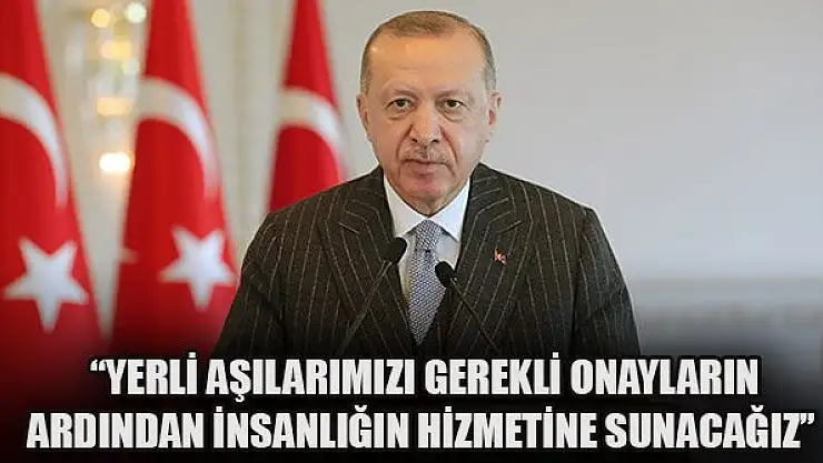Cumhurbaşkanı Erdoğan, Kovid-19 salgınına ilişkin, 'İnsan deneyi aşamasındaki yerli aşılarımızı gerekli onayların ardından milletimiz ile tüm insanlığın hizmetine sunacağız.' dedi.