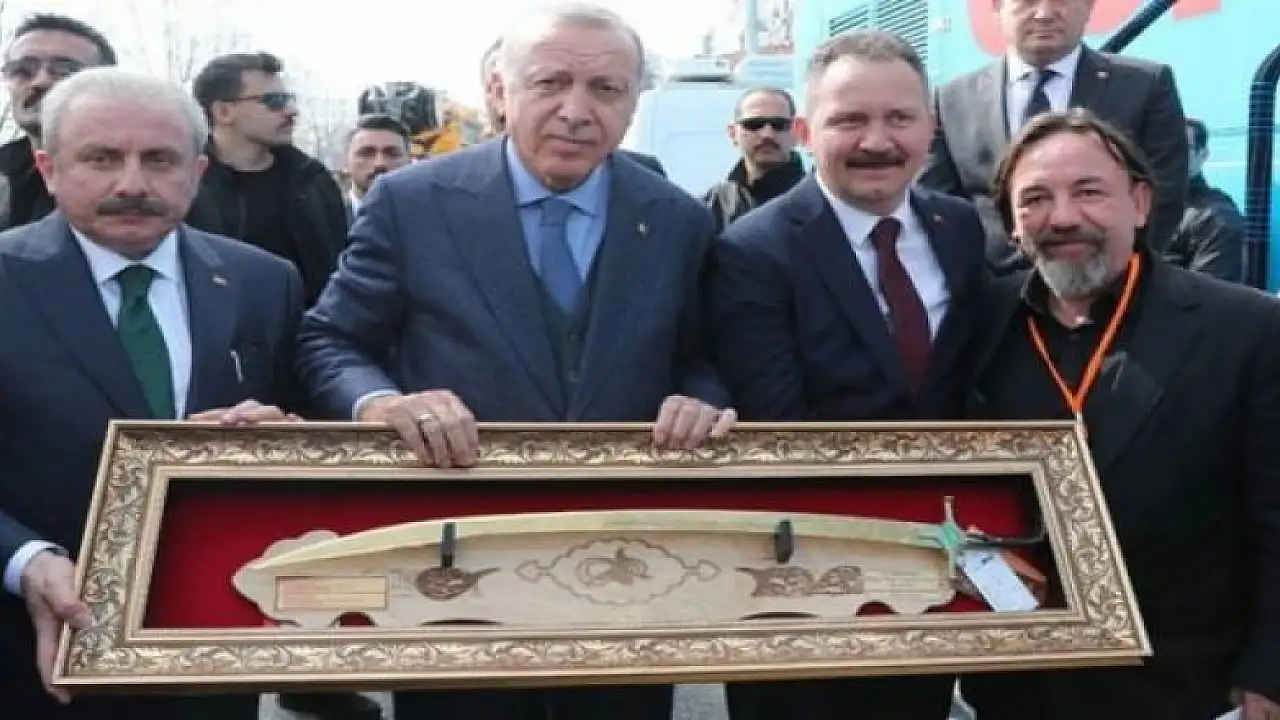 Balıkesir'in Burhaniye ilçesinde makine ve yedek parça üretimi yapan Muammer Tural, 2 yıl önce hazırladığı 'Kanuni kılıcı'nı, Cumhurbaşkanı Recep Tayyip Erdoğan'a Tekirdağ'daki mitingde hediye etti.