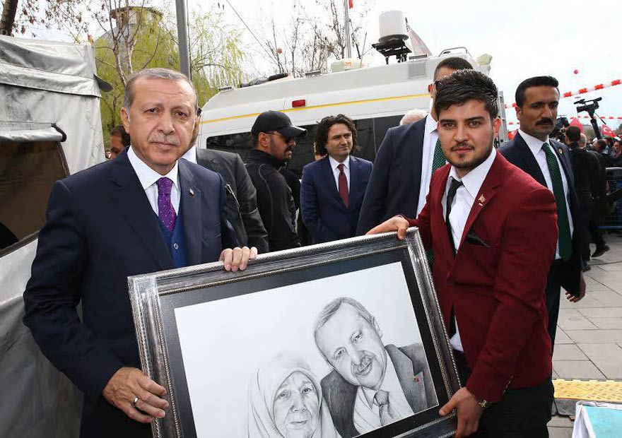 Ünlülere yaptığı karakalem çalışmaları ile bilinen Konyalı genç işadamı Emre Güneysu, Cumhurbaşkanı Recep Tayyip Erdoğan ve annesi Tenzile Erdoğan'ın resmini çizdi.