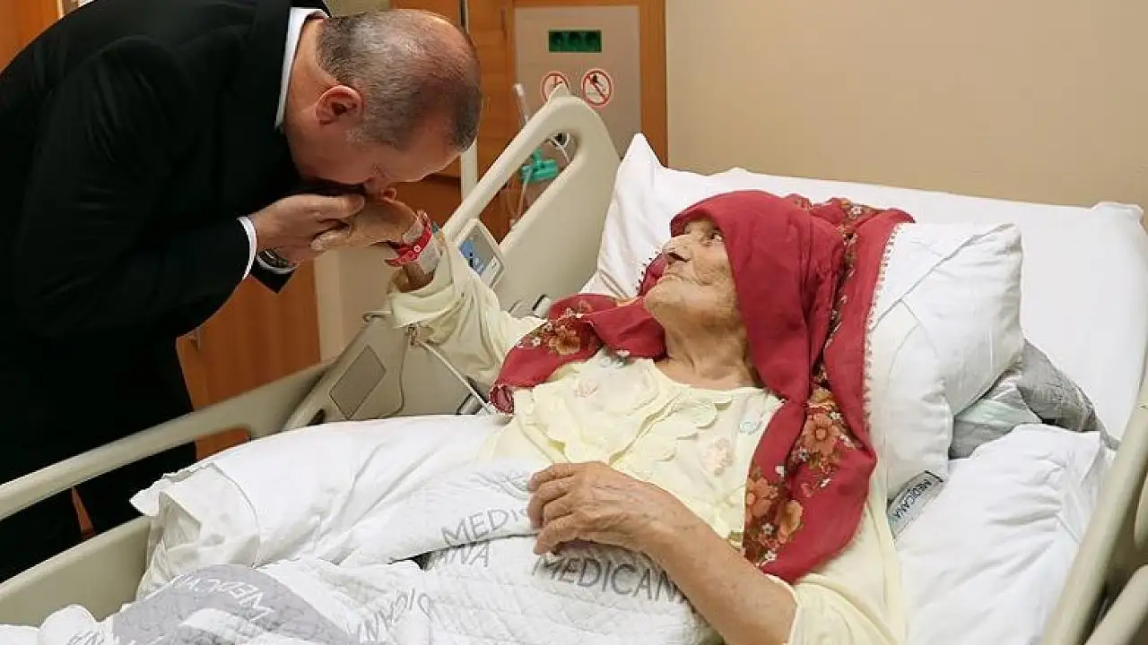 Özel bir hastanede tedavi gören 100 yaşındaki Nazmiye Balcı'yı ziyaret eden Erdoğan, burada yaklaşık 20 dakika kaldı.
