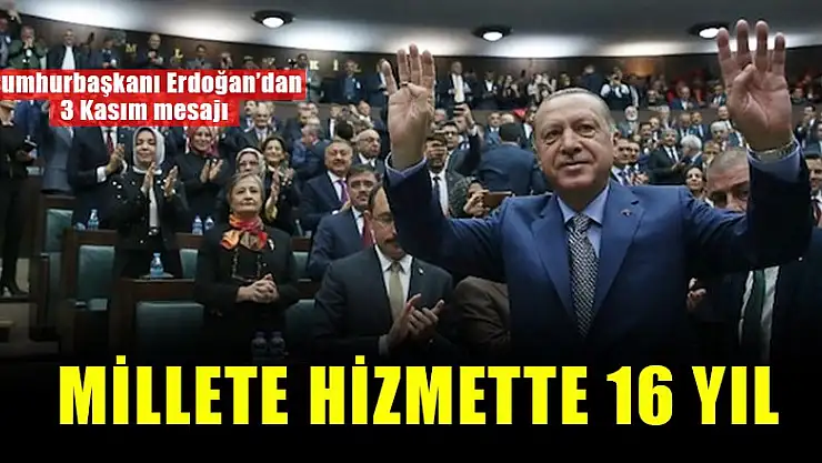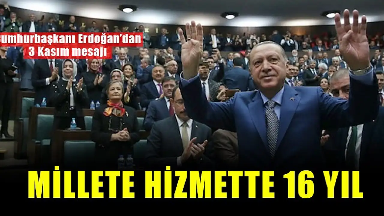 Cumhurbaşkanı Erdoğan'dan 3 Kasım mesajı: Millete hizmette 16 yıl