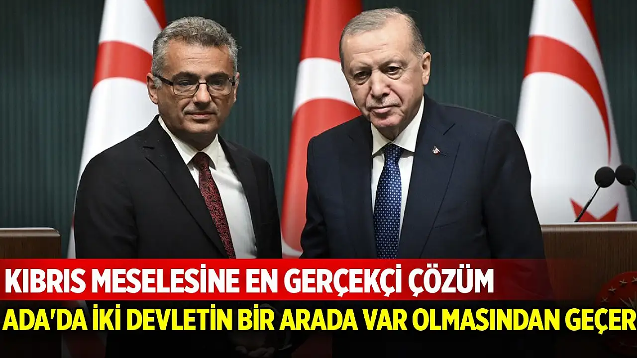 Geçmişin yanlış kararlarıyla Rum tarafına sunulmuş olan rehavet imkanının Kıbrıs Türklerinin öz vatanlarında sonu gelmeyen bir hak mağduriyetine uğramalarına yol açtığını kaydeden Cumhurbaşkanı Erdoğan, bunun tadili için verilen sözlerin de tutulmadığına dikkat çekerek, "Sayın Cumhurbaşkanı gerek geçmiş başbakanlık dönemi gerekse 2008-2010 yıllarındaki müzakere heyeti üyeliği tecrübelerinden bu süreci çok iyi bilmektedir. Bu tecrübeler ışığında kendisinin Rum tarafına son dönemde verdiği mesajlarda Kıbrıs Türk'ünün egemen eşitliğinden taviz verilmeyeceğini vurgulamasını oldukça isabetli buluyorum" değerlendirmesini yaptı. "1968'den beri yapılan ve bir sonuca varamayan müzakerelere artık sırf dostlar alışverişte görsün diye devam etmeyeceğimizi 2017'de Rum tarafının masayı terk etmesiyle çökmesinin ardından ortaya koymuştuk" diyen Cumhurbaşkanı Erdoğan, "Bu duruşumuzu Kıbrıs Türk tarafıyla tam bir anlayış birliği içerisinde muhafaza ediyoruz. Kıbrıs meselesine en gerçekçi çözümün Ada'da iki devletin bir arada var olmasından geçtiğine inanıyoruz. Ada'daki iki halkın barış, refah ve emniyet içinde yan yana yaşayabileceği bir çözümün mümkün olduğuna dair tutumumuzu koruyoruz. Bu doğrultudaki samimi gayretlerimizi de sürdüreceğiz" dedi. Bugün artık çok daha farklı bir uluslararası konjonktürle karşı karşıya olunduğunu kaydeden Cumhurbaşkanı Erdoğan, "Daha önce de söyledim, dünün güneşiyle bugünün özellikle çamaşırı kurutulamaz. Eski dönemin ezberleriyle iğneyle kuyu kazmaya uğraşmak bizi bir yere götürmez. Dilerim Kıbrıs Türk'ünün gösterdiği cesaret ve çözüm iradesini ilerleyen dönemde karşı taraftan da görebiliriz. Bunu mümkün kılabilmek için her zamanki yapıcı, sonuç odaklı, adaletli ve insancıl yaklaşımımızı Kıbrıs Türk halkıyla birlikte sürdüreceğiz" açıklamasında bulundu. Cumhurbaşkanı Erdoğan KKTC Cumhurbaşkanı Erhürman ile Türkiye-KKTC arasındaki iş birliğinin daha da hızlanması için yapılabilecekleri ele aldıklarını belirterek, "Kıbrıs Türk'ünün refahını artırmak, gündelik hayatını kolaylaştırmak ve on yıllardır maruz kaldığı tecritten en az ölçüde etkilenmesini sağlamak üzere hayata geçirdiğimiz projeleri değerlendirdik. Gelecekte aynı kararlılık ve anlayışla yardımcım Cevdet Yılmaz Bey'in koordinasyonunda bu gayretlerimiz sürecektir" değerlendirmesini yaptı.