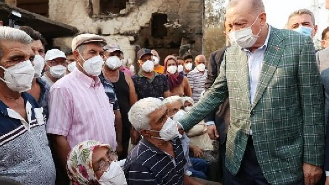 Erdoğan, evleri yanan vatandaşları dinledi, yapılacakları anlattı