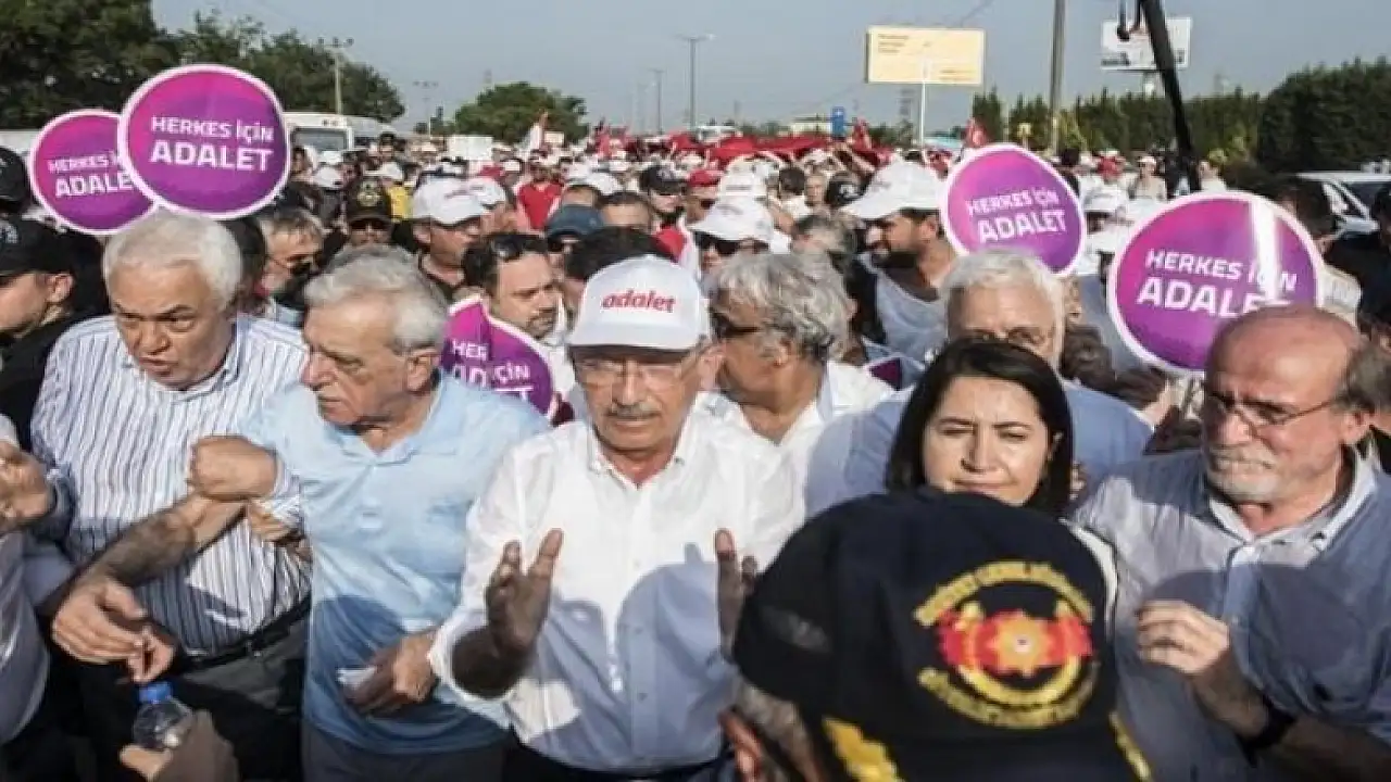 "Ankara'dan İstanbul'a yürüyen bu kişi derdinin ne olduğunu Maltepe'de ifşa etti. Kendisi adalet yürüyüşü demişti olsa olsa sözde adalet yürüyüşü olabilir. CHP Genel Başkanı'nın sözlerini duyunca aklıma Mevlana Hazretleri'nin adalet tanımı geldi. Ağaca su vermeyi adalet, dikene su vermeyi zulüm olarak tanımlıyor Mevlana hazretleri. Bunlar ağaca değil dikene su veriyor. Darbecileri savunan CHP genel başkanı bizden dikenlere su vermemizi talep ediyor.