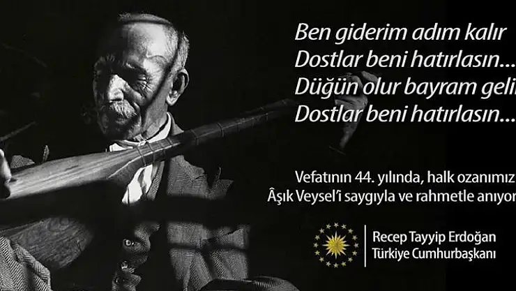 Cumhurbaşkanı Erdoğan, 'Vefatının 44. yılında halk ozanımız Aşık Veysel'i saygıyla ve rahmetle anıyorum.' dedi.