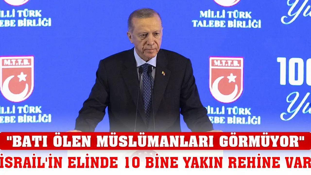 Cumhurbaşkanı Recep Tayyip Erdoğan, Milli Türk Talebe Birliği Genel Kurulu'nda konuştu. Erdoğan, 'Yatıyorlar kalkıyorlar söyledikleri şey Hamas da Hamas. Neymiş 7 Ekim'de Hamas'ın o çıkışı işte bu hali ateşledi diyorlar. Tabi kendilerine şunu söyledim, şu anda 13 bin çocuk, kadın, yaşlı İsrail tarafından öldürüldü. Bunu niye konuşmuyor sunuz? İşte rehineler, tamam İsrail'in elindeki rehineler ne olacak? 10 bine yakın İsrail'in elinde rehine var.' dedi.