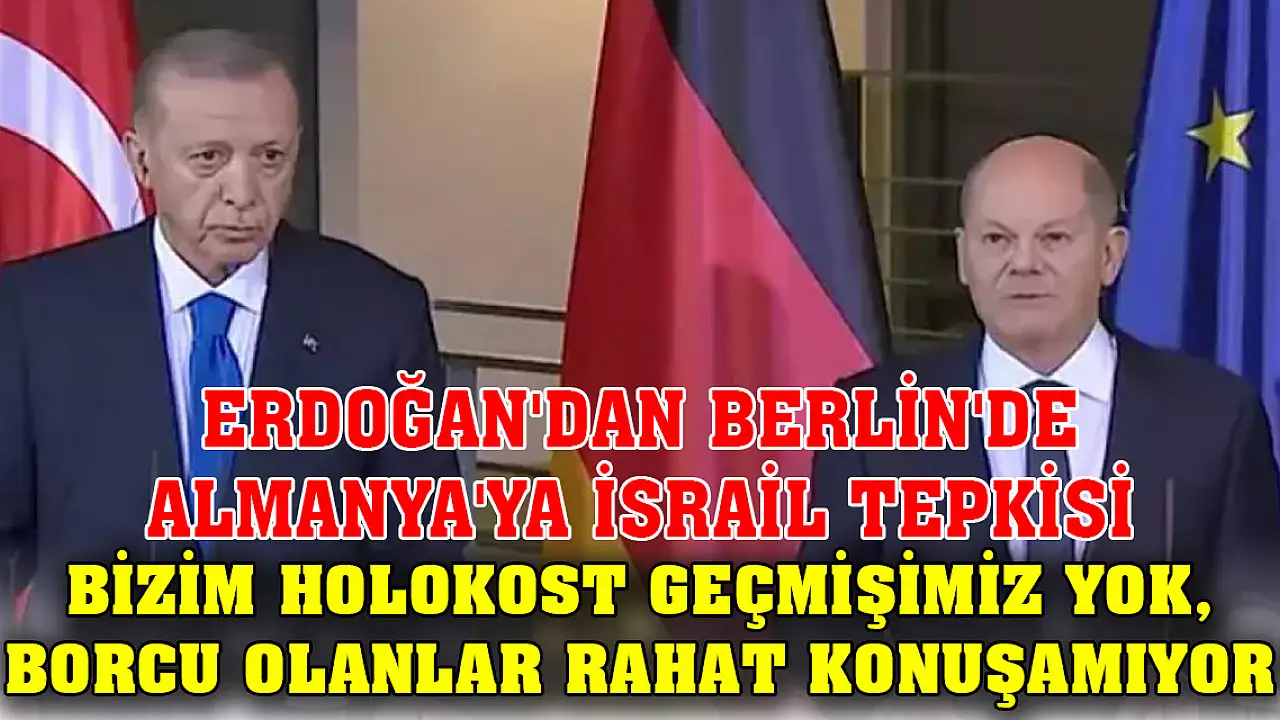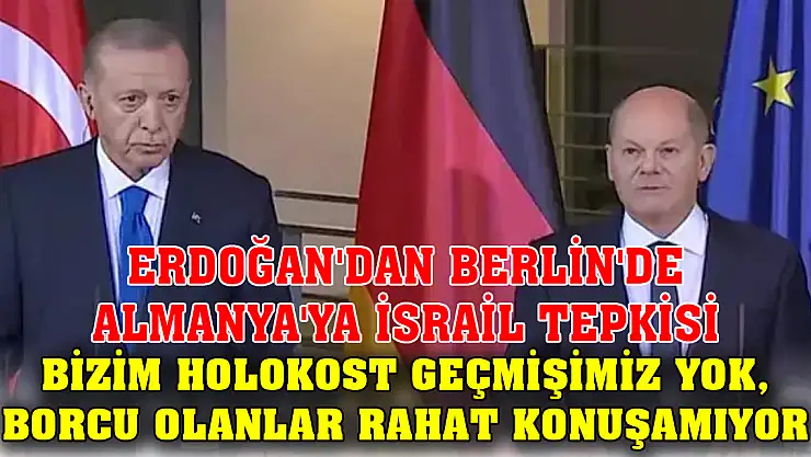 - Cumhurbaşkanı Erdoğan'dan Berlin'de Almanya'ya İsrail tepkisi: Bizim Holokost geçmişimiz yok, borcu olanlar rahat konuşamıyor