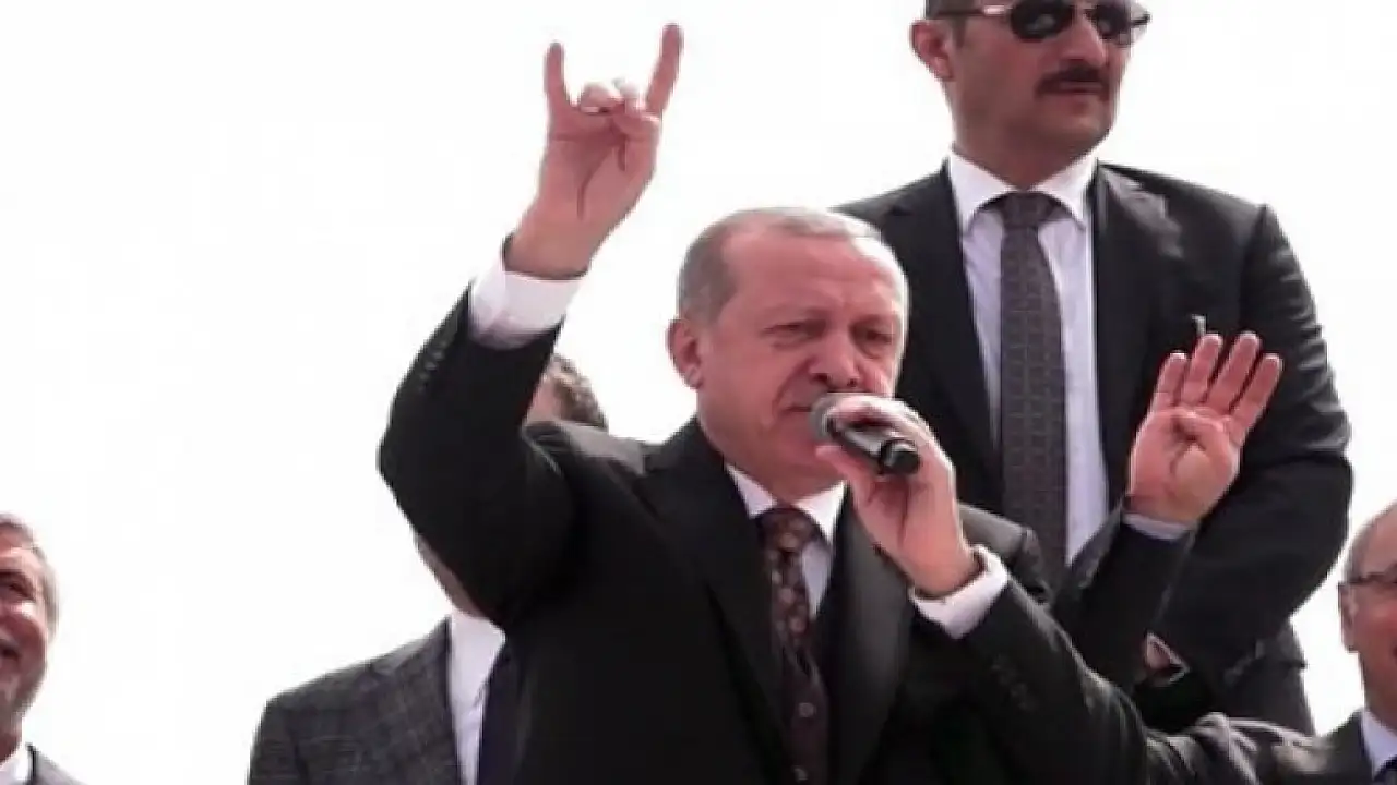 Cumhurbaşkanı, "tek millet, tek bayrak , tek devlet, tek vatan" dediği sırada önce bozkurt işareti yaptı. Ardından da 'rabia' işaretiyle devam etti.