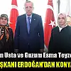 Konya’nın tanınan simalarından Guzum Esma Teyze olarak bilinen Esma Çökmen, AK Parti Genel Başkan Yardımcısı Leyla Şahin Usta ile birlikte Cumhurbaşkanı Recep Tayyip Erdoğan’ı ziyaret etti. Ziyarette, bir çok konu konuşulurken, Konya’daki yatırımlar da görüşülen konular arasında yer aldı. Cumhurbaşkanı Erdoğan, Usta ve Esma Teyze ile birlikte Konyalılara selam iletti.