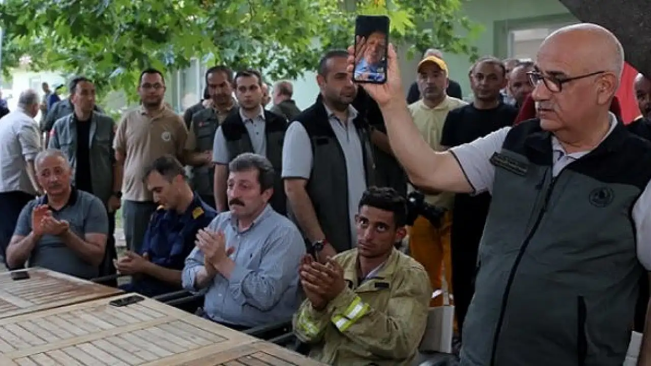 Tarım ve Orman Bakanı Vahit Kirişci, Hisarönü Mahallesi'nin Bördübet mevkisinde 21 Haziran'da başlayan ve dün kontrol altına alınan orman yangının ardından soğutma çalışmalarını sürdüren ekiplerle Değirmenyanı mevkisindeki Yangın Yönetim Merkezi'nde akşam yemeğinde bir araya geldi.