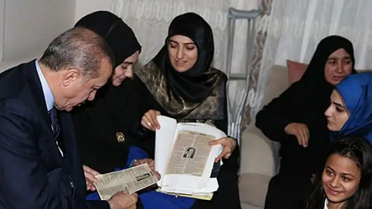 Cumhurbaşkanı Recep Tayyip Erdoğan, 15 Temmuz gecesi şehit olan Muhammed Demir'in ailesine ziyarette bulundu. Ziyaret sırasından kendisi ile ilgili fotoğraf ve haberlerin arşivlendiği albümü gören Erdoğan, duygusal anlar yaşadı.