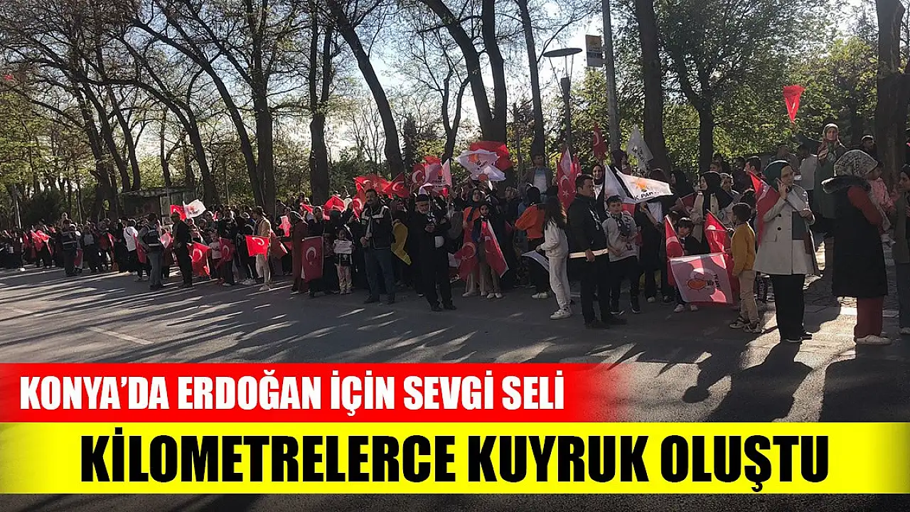 Konya'daki vatandaşlar, Cumhurbaşkanı Recep Tayyip Erdoğan'ı karşılamak için kilometrelerce kuyruk oluşturdular.