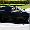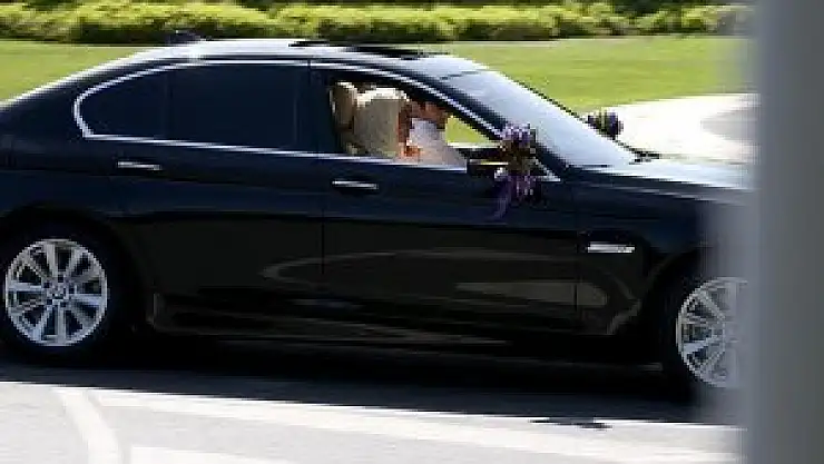 Gelin arabasının aynalarında çiçek bulunduğu görüldü. Gelinlik giyen Sümeyye Erdoğan ön koltukta otururken, aracı Selçuk Bayraktar kullandı.