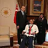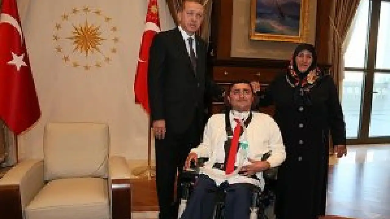 Konya'da, solunum kasları çalışmadığı için nefes borusu açılarak cihaza bağlı yaşamak zorunda kalan 27 yaşındaki Emrah Savsar, Cumhurbaşkanı Recep Tayyip Erdoğan'ı ziyaret ederek, hayalini gerçekleştirmenin mutluluğunu yaşıyor.
