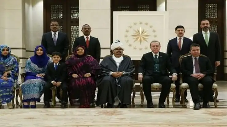 Kordofani'nin, ailesi ve beraberindeki büyükelçilik mensuplarını Cumhurbaşkanı Erdoğan'a takdiminin ardından hatıra fotoğrafı çektirildi.