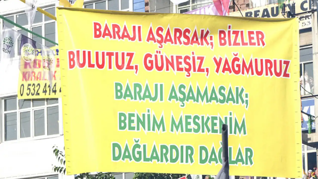 HDP'nin Batman mitinginde, 'Barajı aşarsak bizler bulutuz, güneşiz, yağmuruz, barajı aşamazsak benim meskenim dağlardır dağlar' yazılı pankart açılmasına Cumhurbaşkanı Erdoğan tepki gösterdi.