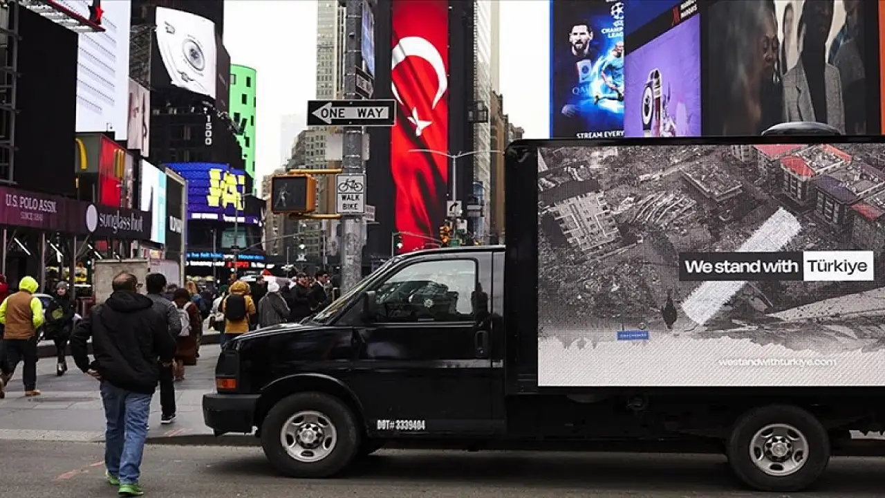 Ayrıca afete yönelik dayanışmayı artırmak amacıyla New York'ta Times Meydanı gibi önemli meydanlarda ve ledli mobil kamyonlar aracılığıyla dış mekan ilanları yayınlandı. Ülkelerin önemli gazetelerinde de "We Stand Türkiye" sloganlarıyla ilanlara yer verildi.