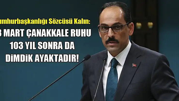 - Cumhurbaşkanlığı Sözcüsü Kalın: 18 Mart Çanakkale ruhu 103 yıl sonra da dimdik ayaktadır