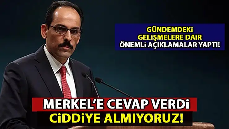 Cumhurbaşkanlığı Sözcüsü İbrahim Kalın, Merkel'in açıklamalarını seçim atmosferinde yaptığını düşündüklerini ve çok da fazla ciddiye almadıklarını söyledi.