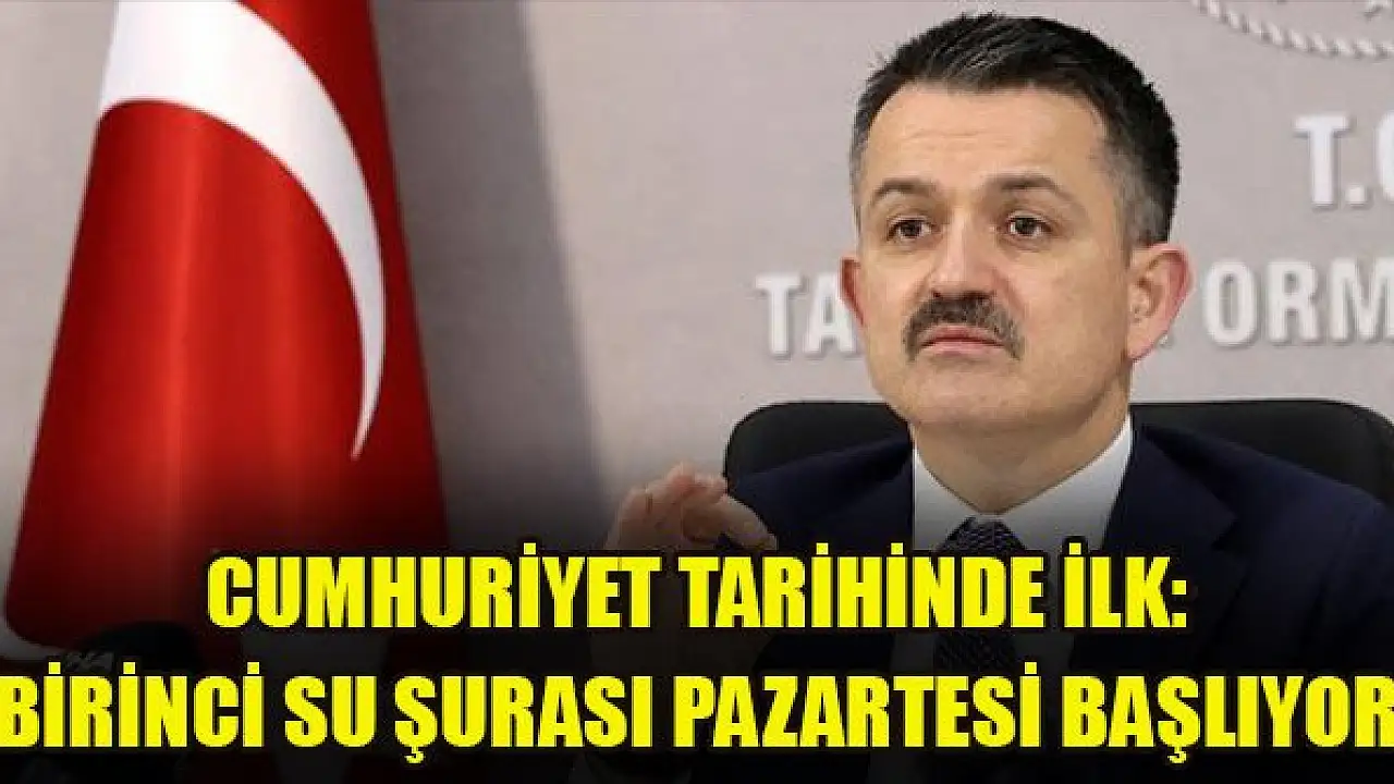 Tarım ve Orman Bakanı Bekir Pakdemirli, 'Cumhuriyet tarihinde ilk kez gerçekleşecek Birinci Su Şurası'nı, Sayın Cumhurbaşkanımızın himayelerinde haftaya pazartesi günü başlatıyoruz.' dedi.