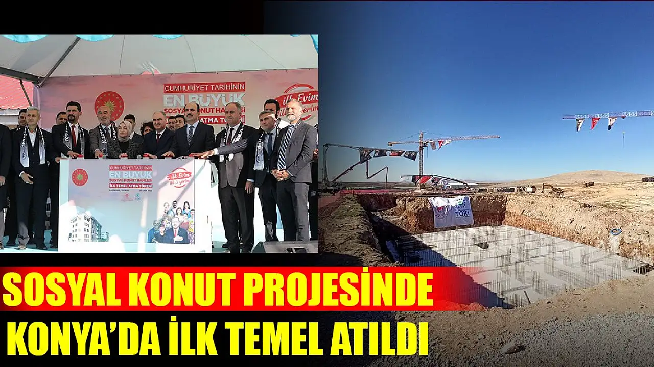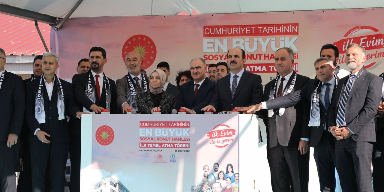 Cumhuriyet tarihinin en büyük sosyal konut projesinde ilk temeller, Cumhurbaşkanı Recep Tayyip Erdoğan'ın da katılımıyla Konya dahil 17 ilde eş zamanlı olarak atıldı.