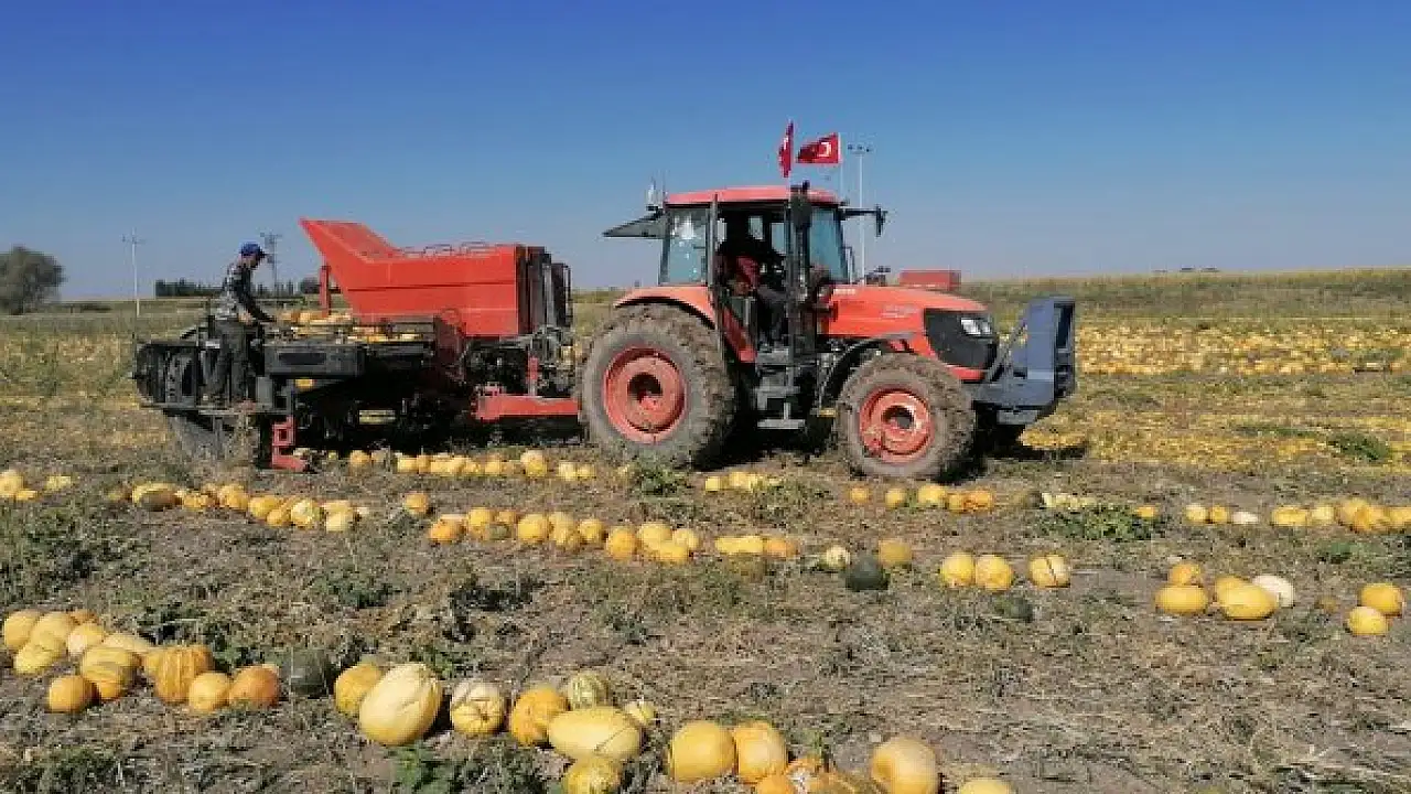 Çumra ilçesinde atın olarak nitelendirilen çerezlik kabak hasadı başladı.