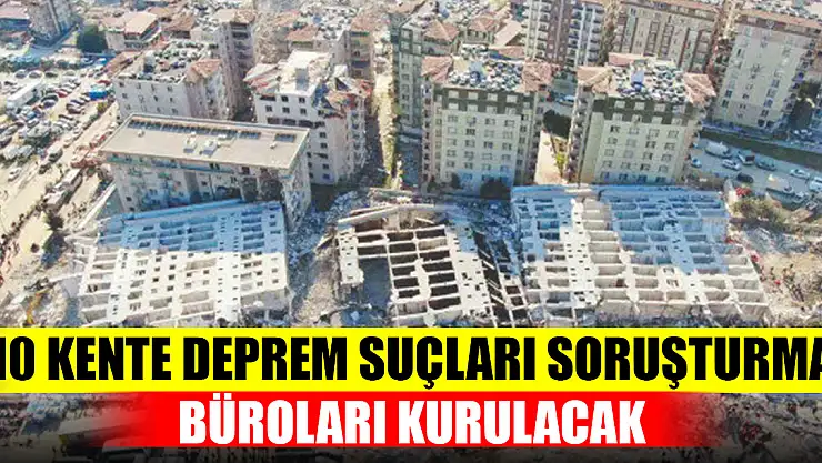 Adalet Bakanlığı, deprem nedeniyle yıkılan binalarla ilgili yapılacak soruşturmalara ilişkin cumhuriyet başsavcılıklarına genelge gönderdi. Buna göre, başsavcılıkların bünyesinde Deprem Suçları Soruşturma Büroları kurulacak. Burada, bir başsavcı vekili ve yeteri kadar savcı görevlendirilecek. Bu büroda görevli savcılara başkaca iş verilmeyecek.