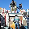 Emniyet Müdürlüğü bahçesine getirilen kamyonun kasasındaki kaçak sigaralar, polislerce depoya taşındı.