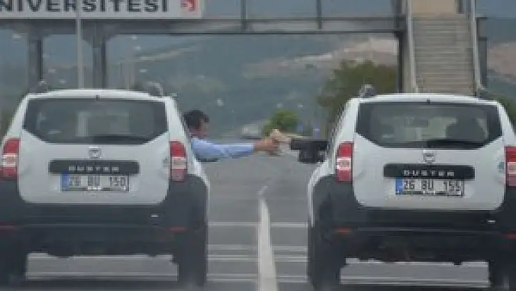 Karayolunda seyredenler, Bilecik Şeyh Edebali Üniversitesi kavşağı yakınlarında Eskişehir'e ait olduğu tahmin edilen 26 BU 150 ve 26 BU 155 plakalı araçların yan camlarından tehlikeli alışverişi endişe içinde izledi. Yağışlı havada, yolun iki şeridini de kapatarak birbirine hayli yaklaşan aynı cins araçlardan birinin ön koltuğunda oturan şahsın, diğer aracın şoför koltuğu yanında oturan şahsa cips olduğu tahmin edilen bir paket uzatması görüntülendi. Araçların pencerelerinden yapılan alış veriş birkaç dakika sürerken, bu esnada günde binlerce aracın geçtiği D-160 karayolunu kapatan sürücüler, kendileri ve diğer araçlar açısından oluşabilecek tehlikeyi de adeta hiçe saydılar.